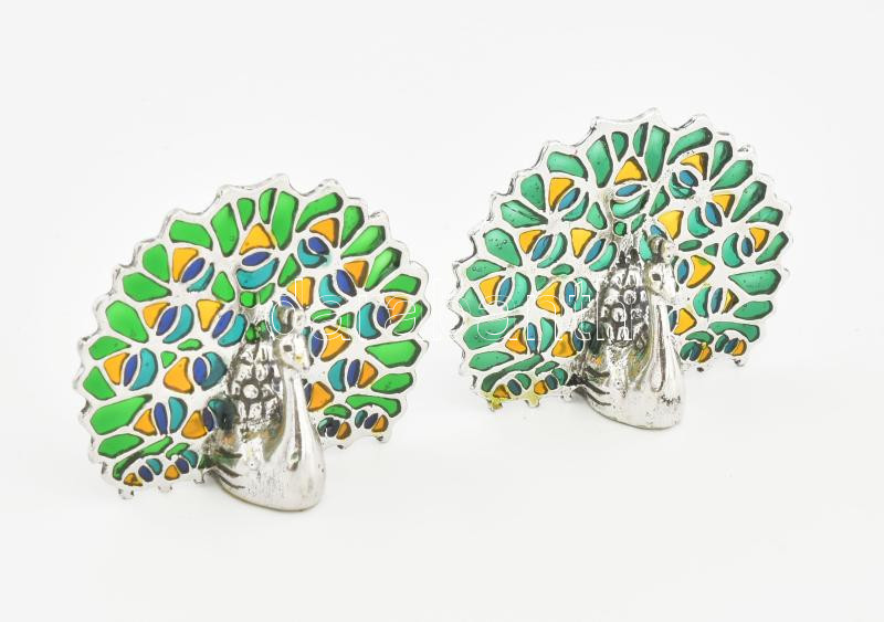 Leírás: Ezüst(Ag) páva, 2 db, jelzett, 4×4,5 cm, bruttó: 38,1 g