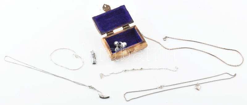 Leírás: Vegyes ezüst (Ag) ékszerek, bruttó: 27 gr, csont dobozkában