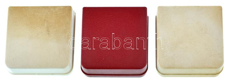 Leírás: DN "Vöröskereszt" aranyozott, jelzett Ag jelvény sérült dísztokban (0.935/1,06g) + DN "Vöröskereszt" aranyozott, jelzett Ag jelvény ezüstszínű díszítménnyel, dísztokban (0.925/br.2,21g/) + DN "Vöröskereszt 25" aranyozott, jelzett Ag jelvény aranyozott díszítménnyel, dísztokban (0.925/br.2,26g) T:UNC,AU