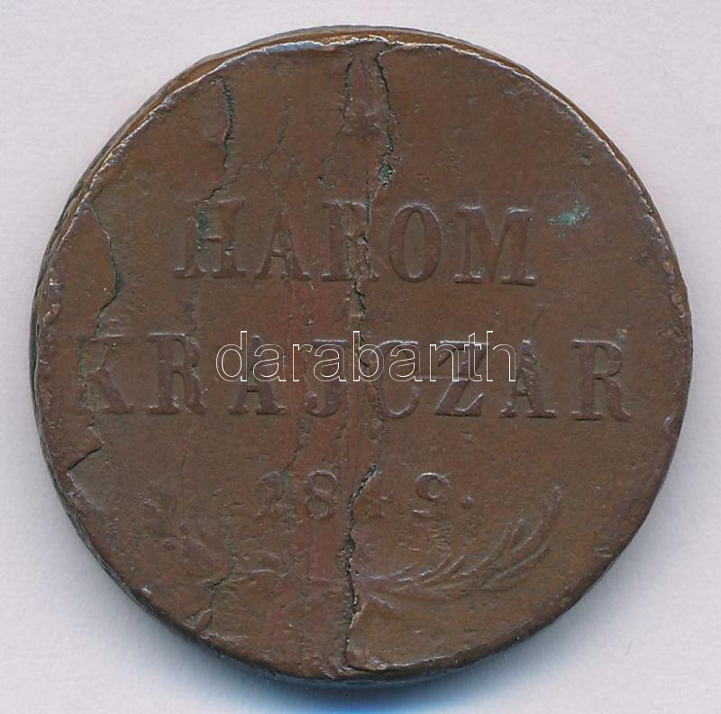 Leírás: 1849NB 3kr Cu T:VF,F ph, lapkahiba