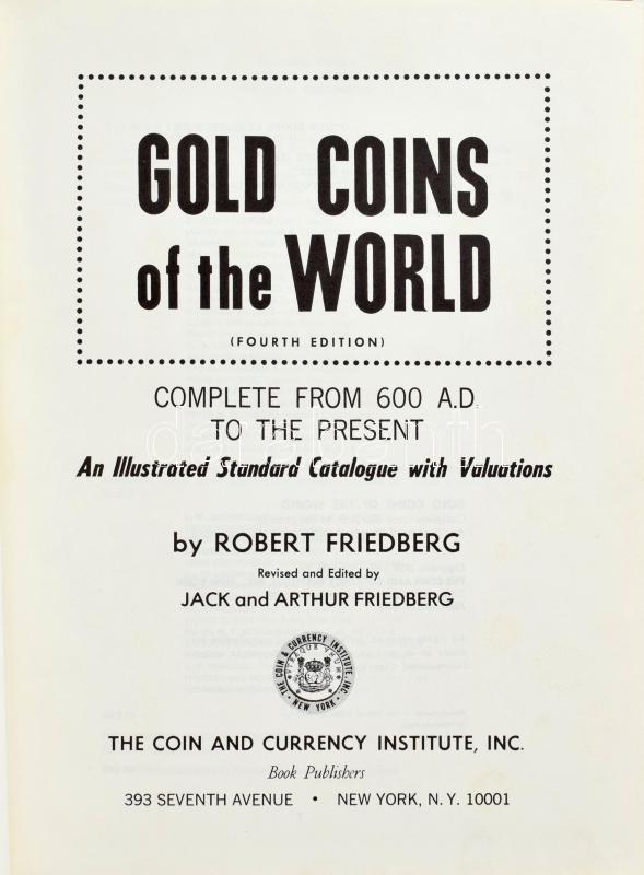 Leírás: Robert Friedberg: Gold Coins of the World - Complete from 600 A.D. to the Present. - 4. kiadás. Használt jó állapotban