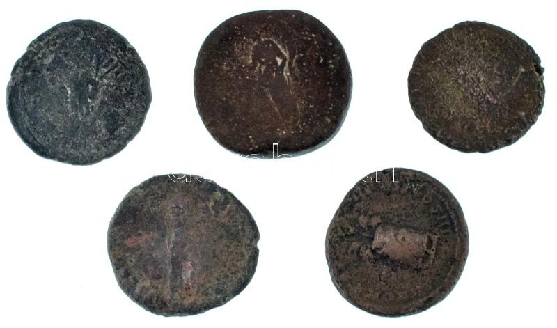 Római Birodalom 5db-os bronz érmetétel, benne As, Dupondius és Sestertius T:F,VG Roman Empire 5pcs bronze coin lot, within As, Dupondius and Sestertius C:F,VG