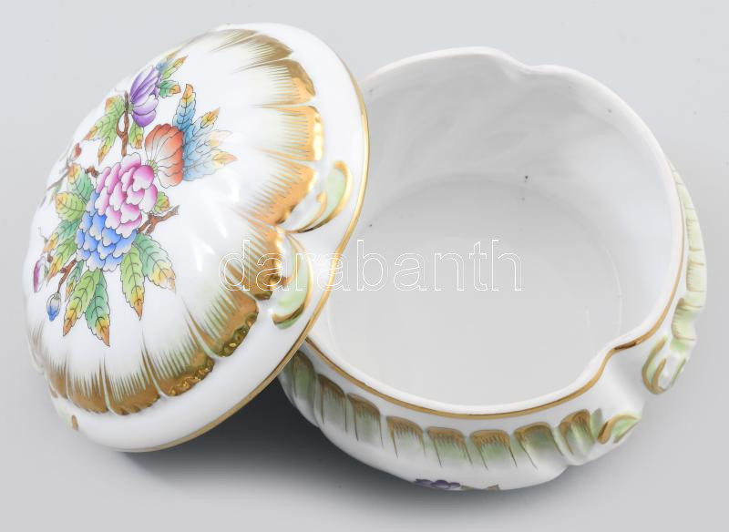 Leírás: Herend Viktória mintás bonbonier. Jelzett, hibátlan, d: 12,5 cm, m: 8 cm