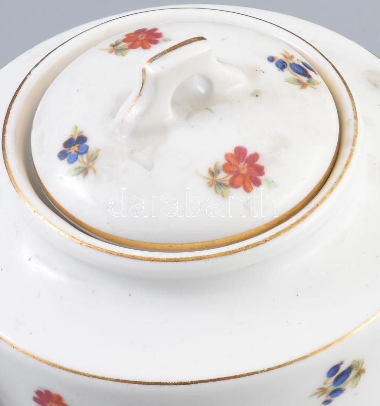 Leírás: Zsolnay teás kanna és cukortartó. Kézzel festett, jelzett, kis kopással 20x16 cm