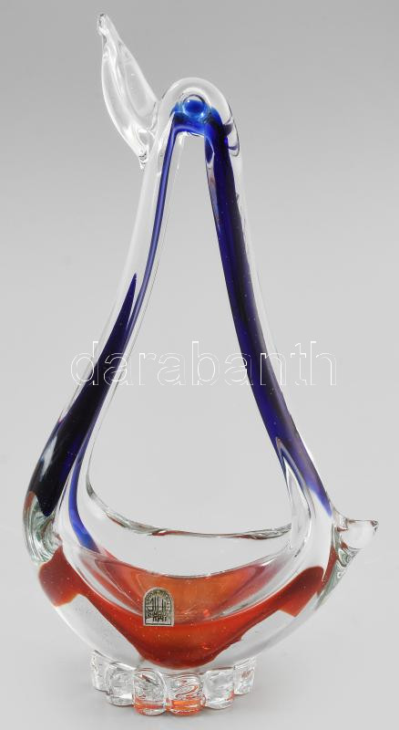 Leírás: Üveg hattyú. Anyagában színezett, címkével jelzett, hibátlan, m: 24 cm