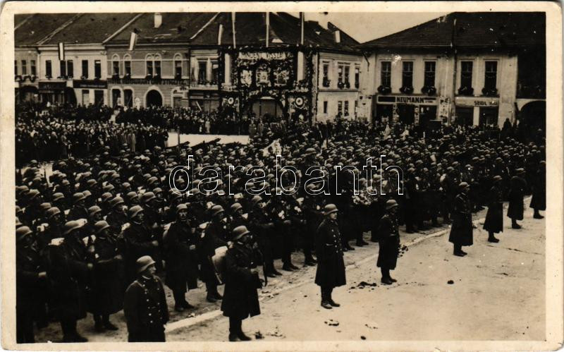1938 Rozsnyó, Roznava; bevonulás, "Mindent Vissza" díszkapu, Seidl és ... https://www.darabanth.com/hu/462-Gyorsarveres/462.0/Kepeslapok/Felvidek~1000007/1938-Rozsnyo-Roznava-bevonulas-Mindent-Vissza-diszkapu-Seidl-es-Neumann-uzlete-Stigutz~II3106546