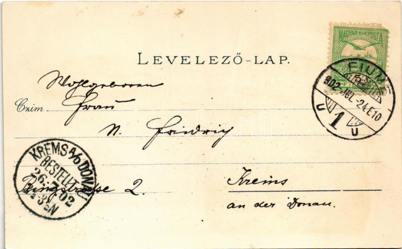 1902 Fiume, Rijeka; Il Porto, Tersatto / Hafen, Trsat. Art Nouveau, fl... https://www.darabanth.com/hu/462-Gyorsarveres/462.0/Kepeslapok/Horvatorszag~1000009/1902-Fiume-Rijeka-Il-Porto-Tersatto-Hafen-Trsat-Art-Nouveau-floral-litho~II3108072