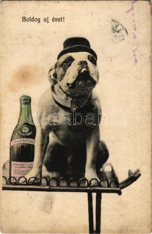 1907 Boldog Újévet! Kutya pezsgővel / New Year greeting postcard, dog ... https://www.darabanth.com/hu/462-Gyorsarveres/462.0/Kepeslapok/Udvozlolapok-Unnepek~1000082/1907-Boldog-Ujevet-Kutya-pezsgovel-New-Year-greeting-postcard-dog-with-champagne-fl~II3099252
