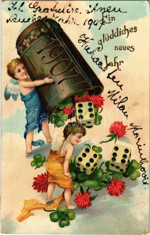 1907 Ein glückliches neues Jahr / Újévi üdvözlet / New Year greeting. ... https://www.darabanth.com/hu/462-Gyorsarveres/462.0/Kepeslapok/Udvozlolapok-Unnepek~1000082/1907-Ein-gluckliches-neues-Jahr-Ujevi-udvozlet-New-Year-greeting-litho~II3102183