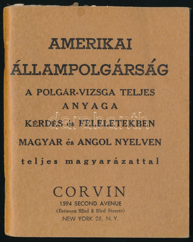 Amerikai állampolgársági vizsga teljes anyaga Kérdés és feleletekben Magyar és angol nyelven. teljes magyarázattal. New York., é.n. Corvin. 127p. Papírborítóval