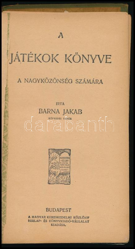 Barna Jakab: A játékok könyve. Bp.,é.n.Magyar Kereskedelmi Közlöny. Ki... https://www.darabanth.com/hu/462-Gyorsarveres/462.0/Konyvek/Konyvek-Egyeb-ritkasagok~2000016/Barna-Jakab-A-jatekok-konyve-Bp-enMagyar-Kereskedelmi-Kozlony-Kiadoi-aranyozott~II3111459