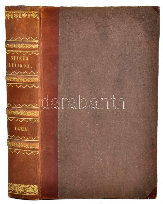 Carl von Rotteck-Carl Welcker: Staats-Lexikon oder Staatswissenschaften in Verbindung mit vielen der angesehensten Publicisten Deutschlands. Siebenter Band. Ultona, Hammerich. Félbőr kötés, jó állapotban, Gróf Zichy Ödön pecsétjével.