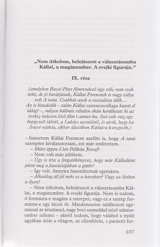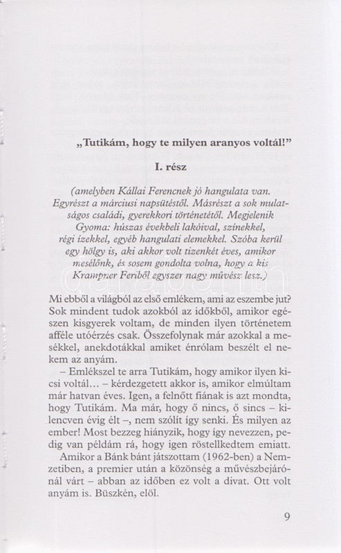 Dedikált: ,,Joszik Pistának szeretettel: Kállai Ferenc". A színművésszel és a pályatársakkal készített interjúkon alapuló portré Kállai Ferenc színészi karrierjéről és magánéletéről, oldalszámozáson belül gazdag szövegközti és egész oldalas illusztrációs anyaggal.