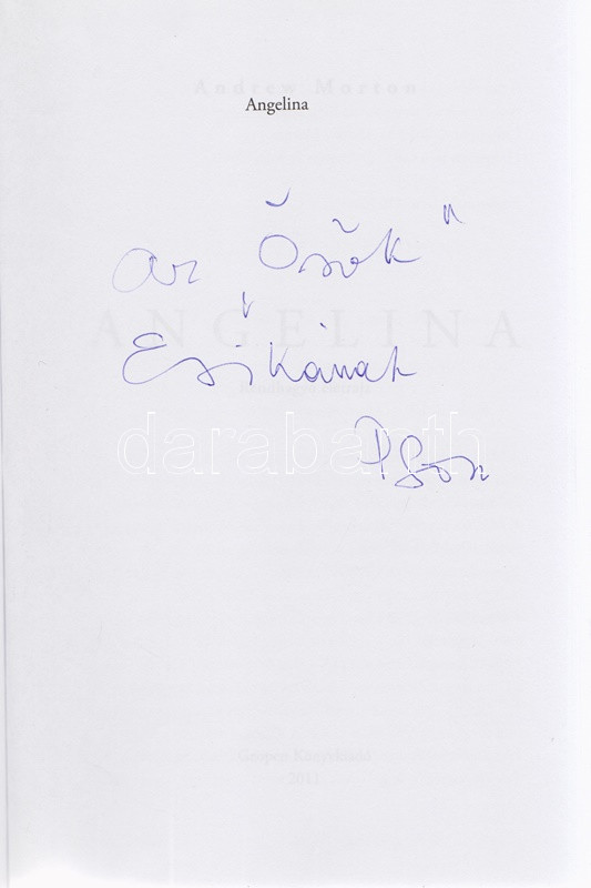 Angelina. Rendhagyó életrajz. (Psota Irén által dedik... https://www.darabanth.com/hu/462-Gyorsarveres/462.0/Konyvek/Konyvek-Egyeb-ritkasagok~2000016/Morton-Andrew-Angelina-Rendhagyo-eletrajz-Psota-Iren-altal-dedikaltBudapest-2011-Geopen~II3103169