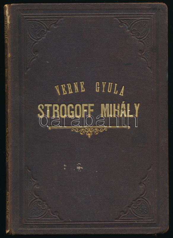 Leírás: Verne Gyula: Strogoff Mihály utazása Moszkvától Irkutskig. Átdolgozta: Szász Károly. Bp., 1885, Franklin,6+247 p. 2. kiadás. Egészoldalas fametszetű illusztrációkkal. Korabeli aranyozott egészvászon-kötés, márványozott lapélekkel, kopott borítóval, sérült gerinccel, tulajdonosi névbélyegzéssel (Trischler Gyula/Trischler Béla.)