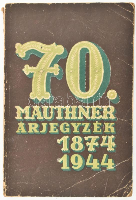 Leírás: 1944 70. Mauthner árjegyzék. 1874-1944. Gazdag képanyaggal illusztrált. Kiadói papírkötés, kopott, szakadt borítóval, a borítón gyűrődésnyomokkal, hiányos gerinccel.