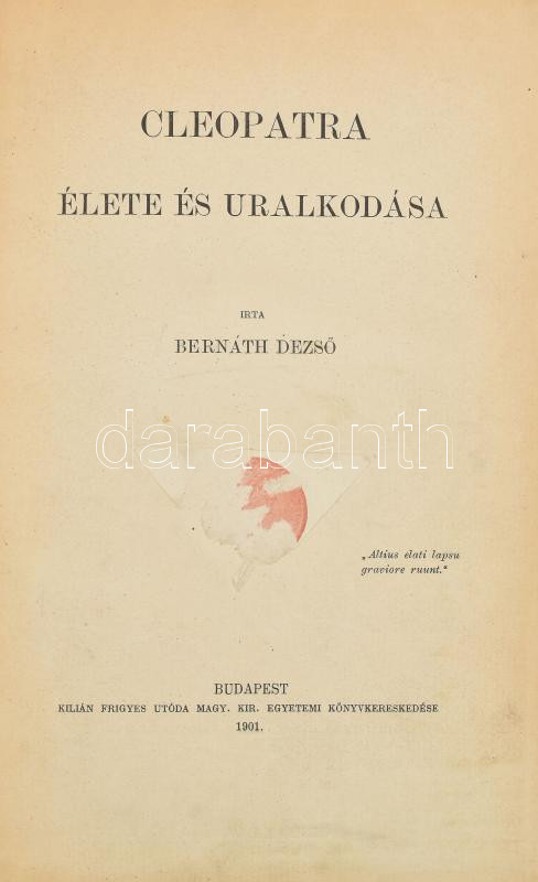 Bernáth Dezső: Cleopatra élete és uralkodása. Bp., 1901, Kilián Frigye... https://www.darabanth.com/hu/462-Gyorsarveres/462.0/Konyvek/Konyvek-Tortenelem~2000047/Bernath-Dezso-Cleopatra-elete-es-uralkodasa-Bp-1901-Kilian-Frigyes-utoda-Revai-es~II3108799