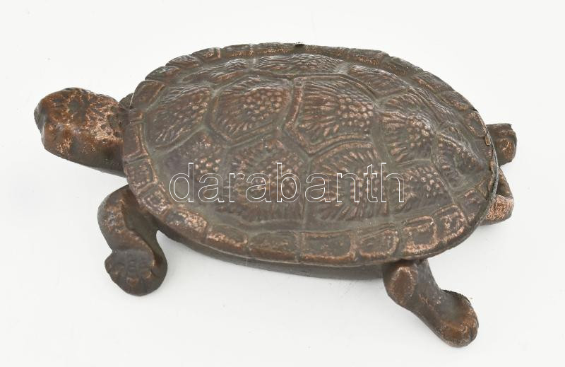 Teknős hamuzó. Bronzírozott fém, h: 11 cm https://www.darabanth.com/hu/462-Gyorsarveres/462.0/Mutargy-papirregiseg-egyeb/Bolhapiac~500014/Teknos-hamuzo-Bronzirozott-fem-h-11-cm~II3101591