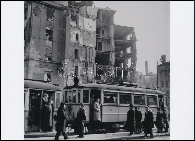 Leírás: cca 1956 november, Budapesten a 4-es villamos vonalán, 1 db modern nagyítás, jelzés nélkül, 15x21 cm