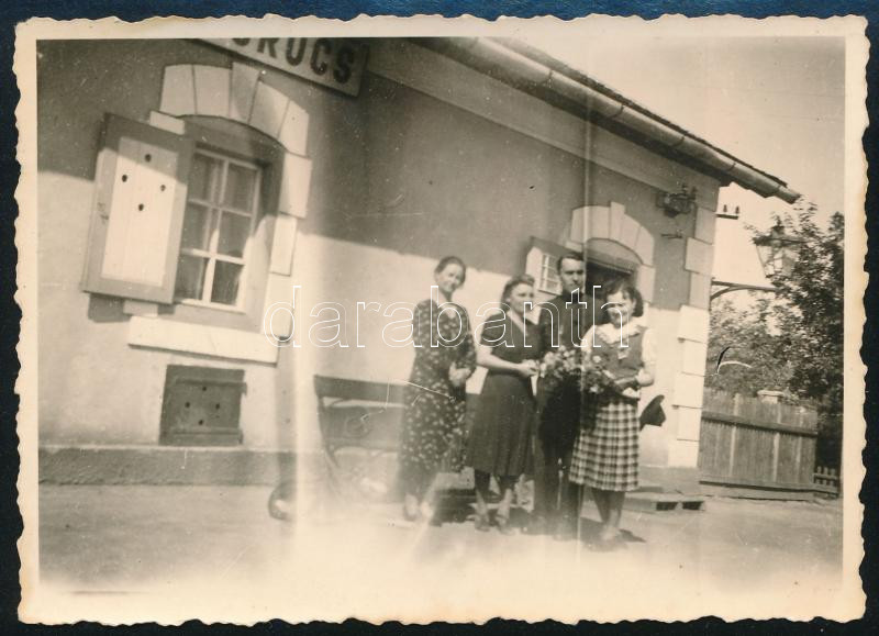 Leírás: cca 1935-1940 Mezőrücs, Erdély, vasútállomás, fotó, 6,5×8,5 cm