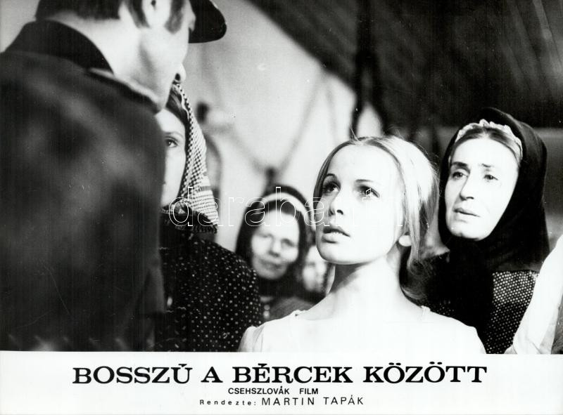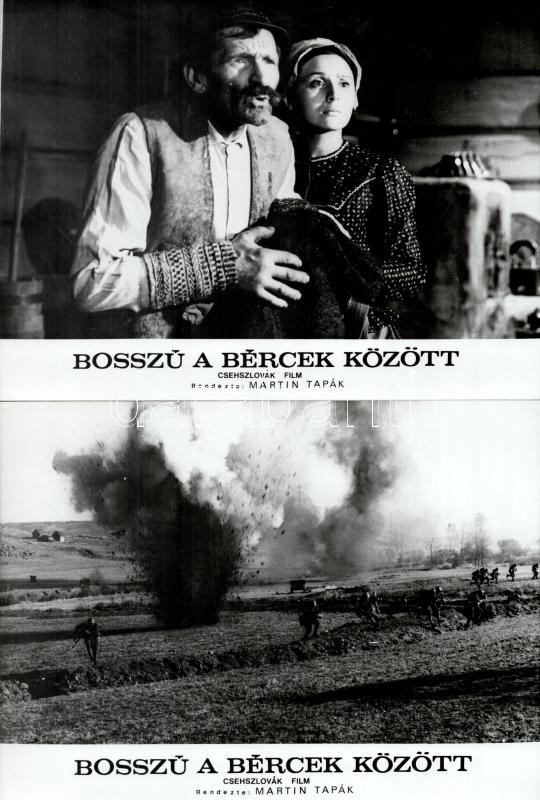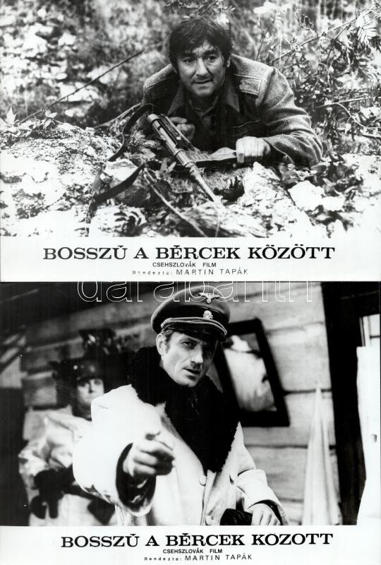 cca 1974 ,,Bosszú a bércek között" című csehszlovák film jelenetei és szereplői, 9 db vintage produkciós filmfotó (vitrinfotó, lobbyfotó) ezüst zselatinos fotópapíron, a használatból eredő (esetleges) kisebb hibákkal, 18x24 cm