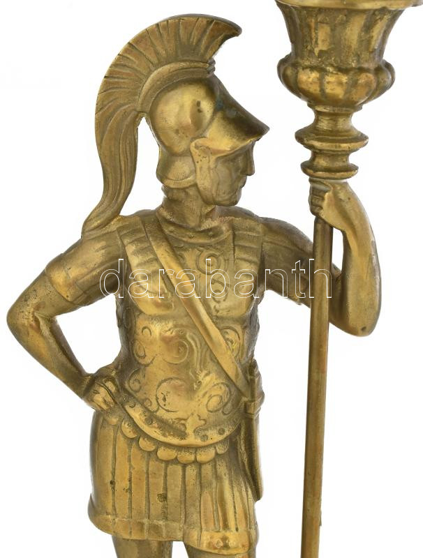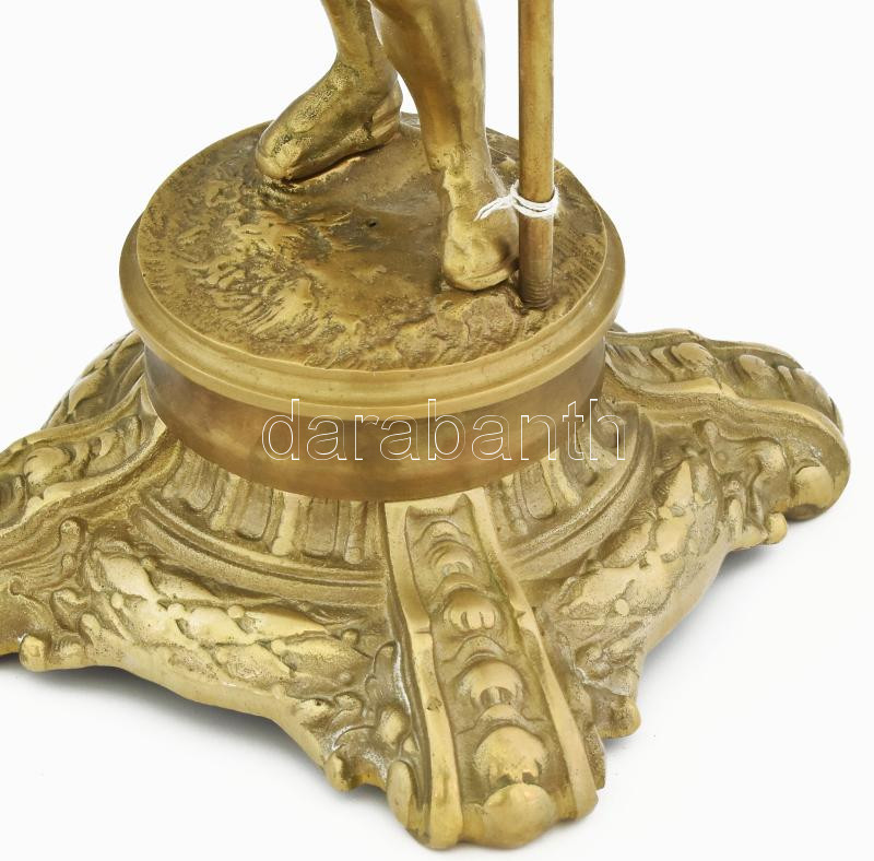Leírás: Réz asztali lámpa, petróleumlámpa. Alabárdos katona figurával, csiszolt üveggel, felső üveg búra nélkül. 53 cm