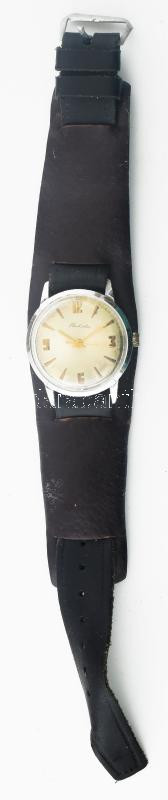 Leírás: Raketa kézi felhúzós szovjet karóra, másodpercmutatóval, bőr szíjjal, működik, kissé koszos számlappal, d: 33 mm