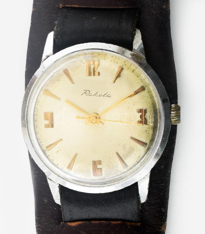Raketa kézi felhúzós szovjet karóra, másodpercmutatóval, bőr szíjjal, ... https://www.darabanth.com/hu/462-Gyorsarveres/462.0/Mutargy-papirregiseg-egyeb/Orak~500012/Raketa-kezi-felhuzos-szovjet-karora-masodpercmutatoval-bor-szijjal-mukodik-kisse-koszos~II3106809