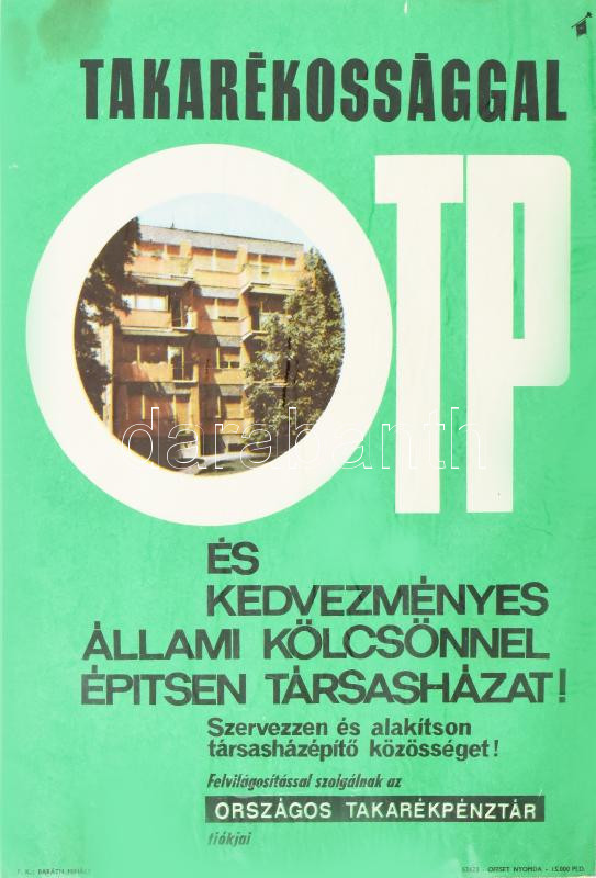 "Takarékossággal és kedvezményes állami kölcsönnel építsen társasházat... https://www.darabanth.com/hu/462-Gyorsarveres/462.0/Mutargy-papirregiseg-egyeb/Plakat~2000014/Takarekossaggal-es-kedvezmenyes-allami-kolcsonnel-epitsen-tarsashazat-OTP-kisplakat-~II3111724