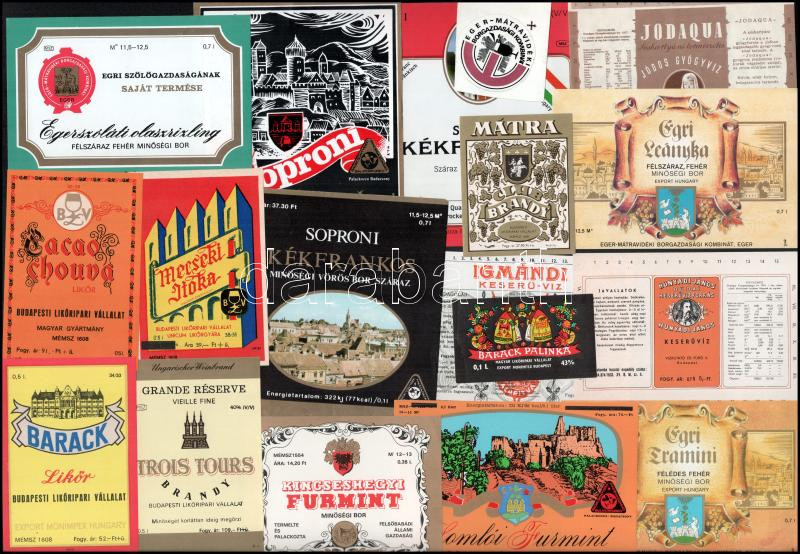 Leírás: Vegyes italcímke tétel, 27 db (Állami Gazdaság Pinot Noir, Budapesti Likőripari Vállalat tojáslikőr különlegesség, Mátra Brandy, stb.)