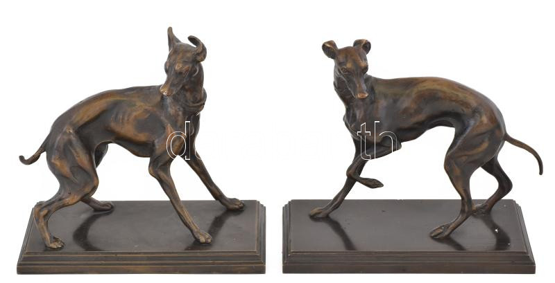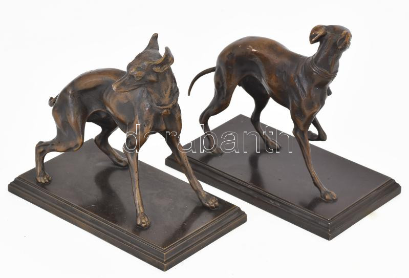 Leírás: 2 db agár szobor párban. Bronz, bronz talapzaton 17x16 cm