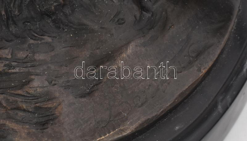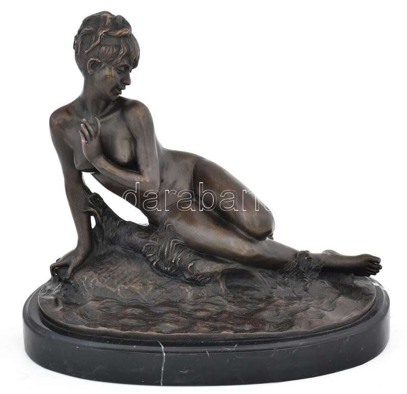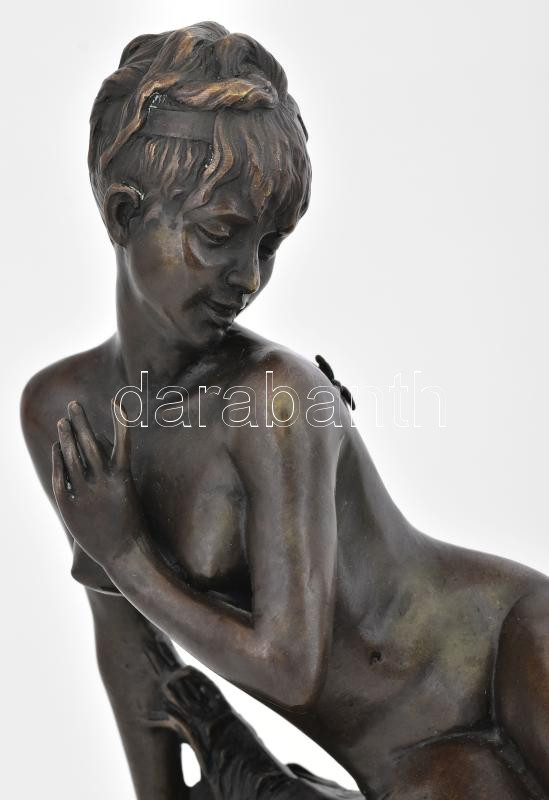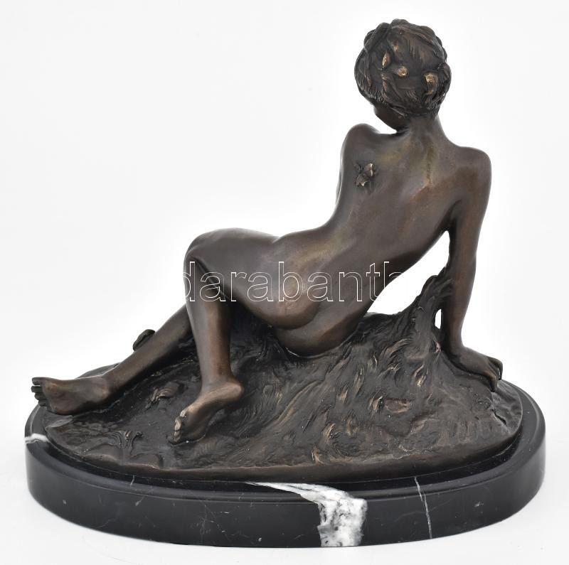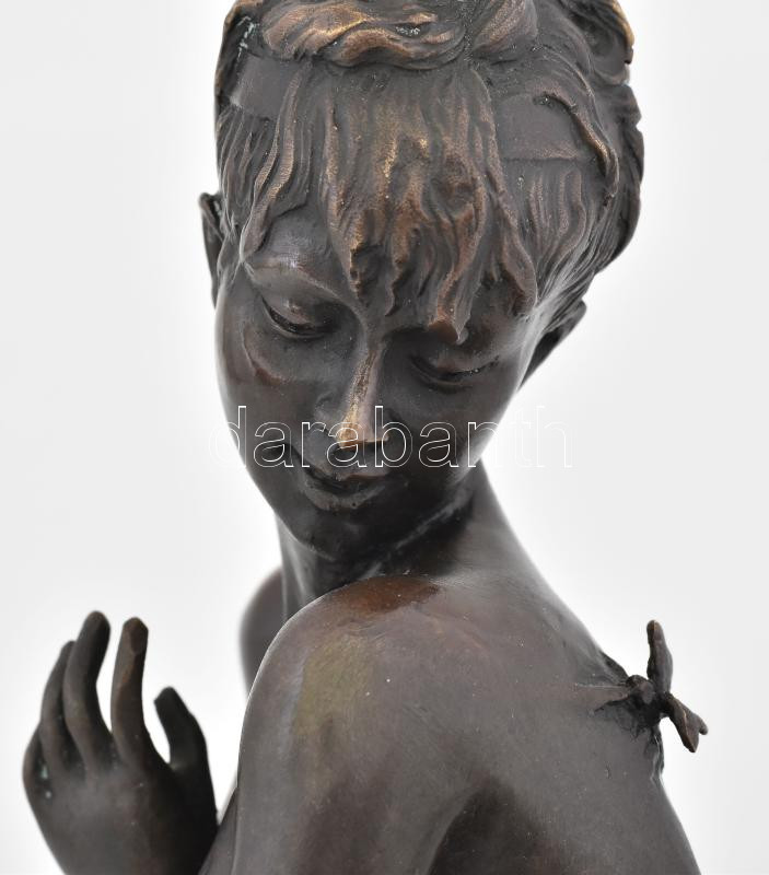 Leírás: Hélene Leon Bertaux ( 1825 - 1909 ): Fürdőző lány, lepkével. Bronz, jelzett, márvány talapzaton. sz? 29 cm, m: 26 cm