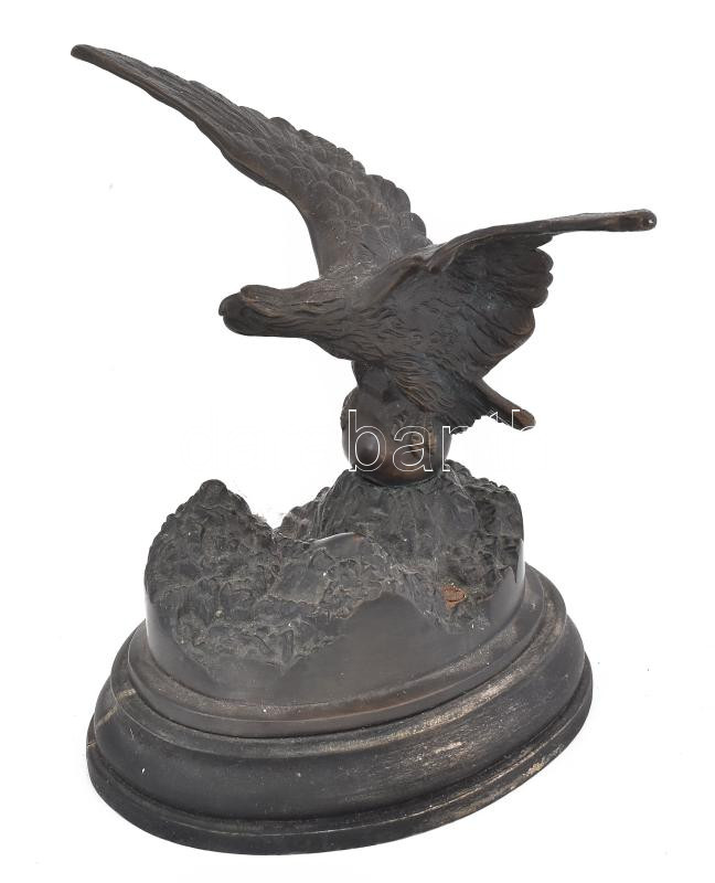 Jelzés nélkül: Bronz turul madár fa talapzaton. 20x22 cm https://www.darabanth.com/hu/462-Gyorsarveres/462.0/Mutargy-papirregiseg-egyeb/Szobrok-kisplasztikak-plakettek~500011/Jelzes-nelkul-Bronz-turul-madar-fa-talapzaton-20x22-cm~II3097999