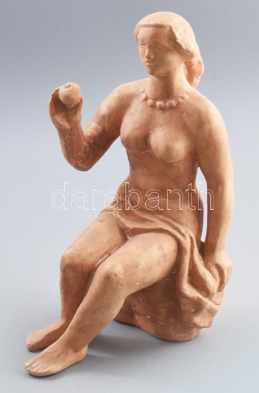 Leírás: Somogyi Árpád (1926-2008): Almát tartó lány. Festett terrakotta, jelzett, kis kopással, m: 24 cm