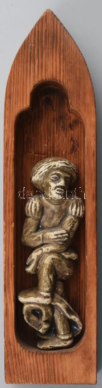 Leírás: Turbános embert ábrázoló Faragott kő fali dísz 23 cm fa keretben