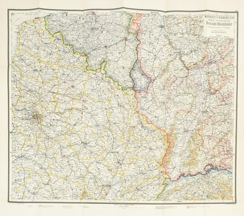 Leírás: Nordost - Frankreich Belgien, Luxemburg, Deutsche Rheinlander. Artaria, Wien, 1914. 1: 800 000 térkép borítóval