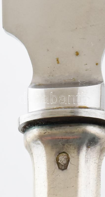 Solingen ezüst (Ag) nyelű süteménykés. Jelzett, h: 27 cm, bruttó: 98g https://www.darabanth.com/hu/462-Gyorsarveres/462.0/Nemesfem-disztargyak-ekszerek-dragakovek/Nemesfem-disztargyak-ekszerek-dragakovek~2000049/Solingen-ezust-Ag-nyelu-sutemenykes-Jelzett-h-27-cm-brutto-98g~II3111828