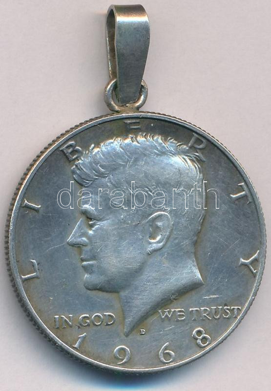 Amerikai Egyesült Államok 1968D 1/2$ Ag "Kennedy" füllel, medállá alakítva T:XF patina