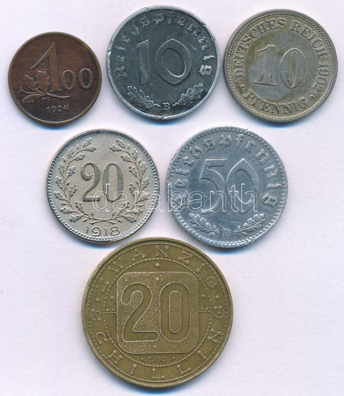 Ausztria 1918. 20h Fe + 1924. 100K bronz + 1980. 20Sch "Ausztria kilenc tartománya" + Német Birodalom / Német Harmadik Birodalom 1902F 10pf Cu-Ni + 1940B 10pf Zn + 1943B 50pf Al T:AU-VF ph