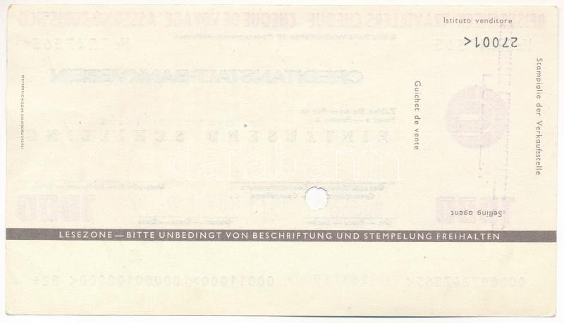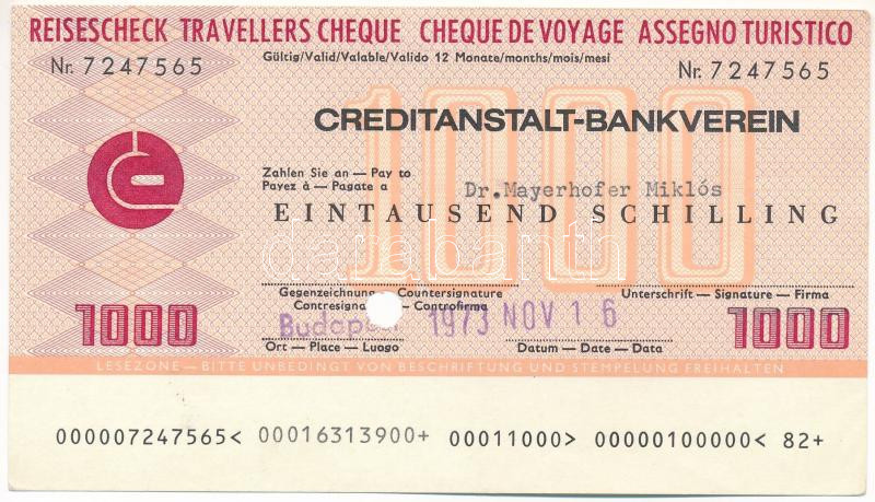 Ausztria / Bécs 1973. "Creditanstalt-Bankverein" utazási csekkje 1000Sch-ről, lyukasztással érvénytelenítve T:AU