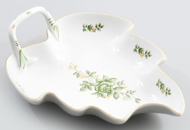 Leírás: Hollóházi Erika mintás levél alakú kínáló. Jelzett, hibátlan, 22x18 cm