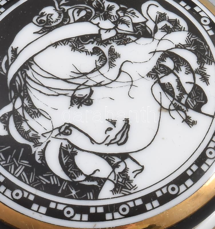 Leírás: Jurcsák László által tervezett Hollóházi porcelán bonbonier, minimális kopással, jelzett, d: 6,5 cm