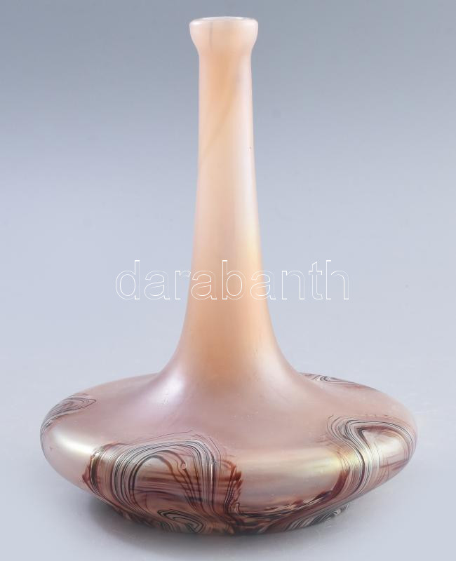 Leírás: Szecessziós irizáló váza. Anyagában színezett, jelzés nélkül, hibátlan, m: 17 cm