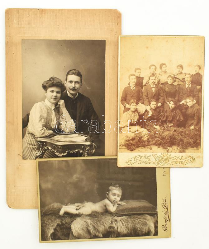 Leírás: cca 1910 3 db felvidéki keményhátú fotó (Nyitra, Késmárk), némelyik sérüléssel, vegyes méretben