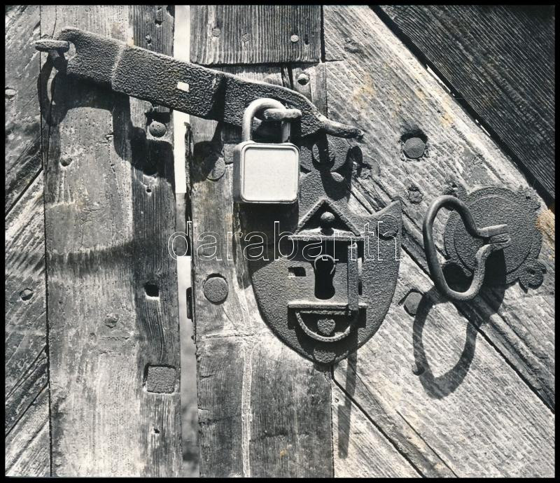 Leírás: cca 1975 Kocsis Balázs (Székesfehérvár) feliratozott, vintage fotóművészeti alkotása (Zárt kapu), ezüst zselatinos fotópapíron, 11,6x13,7 cm