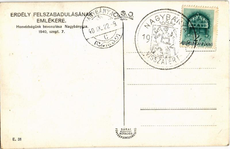 Leírás: 1940 Nagybánya, Baia Mare; bevonulás / entry of the troops + "1940 Nagybánya visszatért" So. Stpl