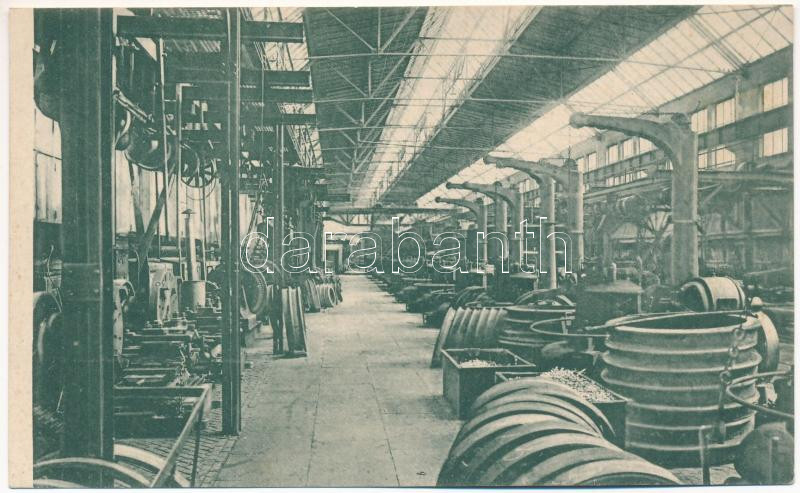 Leírás: Resicabánya, Resica, Resicza, Resita; Fabrica de roate / Räderpaarfabrik / vasgyár, kerékgyártó műhely, belső / ironworks, wheel factory, interior (fl)