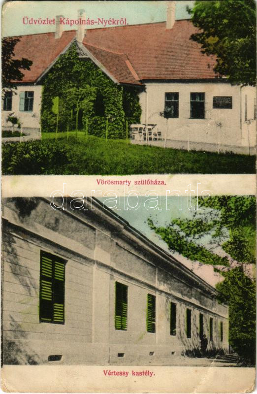 1910 Kápolnásnyék, Kápolnás-Nyék; Vörösmarty szülőháza, Vértessy kasté... https://www.darabanth.com/hu/463-Gyorsarveres/463.0/Kepeslapok/Magyarorszag~1500006/1910-Kapolnasnyek-Kapolnas-Nyek-Vorosmarty-szulohaza-Vertessy-kastely-Wessely-Zsigm~II3118320