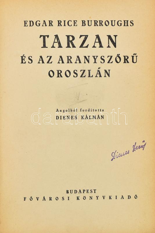 Edgar Rice Burroughs: Tarzan és az aranyszőrű oroszlán ?