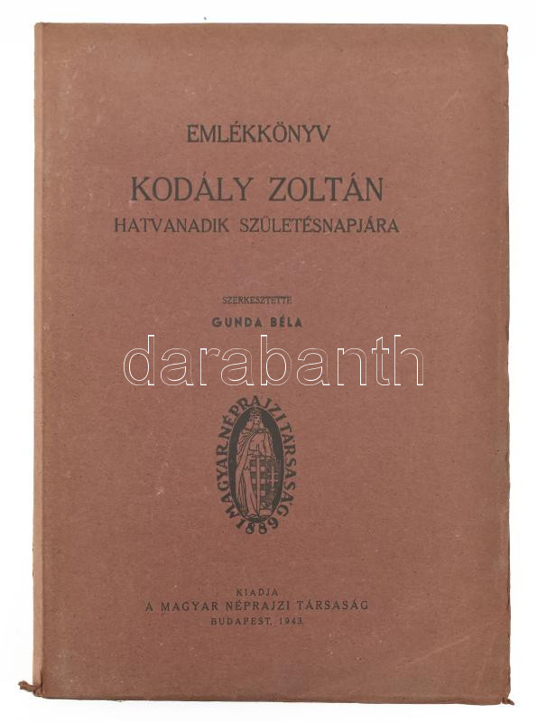 Leírás: Emlékkönyv Kodály Zoltán hatvanadik születésnapjára. Szerk.: Gunda Béla. Bp., 1943, Magyar Néprajzi Társaság, 1 (hártyapapírral védett címkép) t.+ 2 sztl. lev.+ III+(1)+369+(3) p. Kiadói papírkötés, nagyrészt jó állapotban, minimálisan sérült borítóval, felvágatlan lapokkal. Megjelent 2000 példányban.